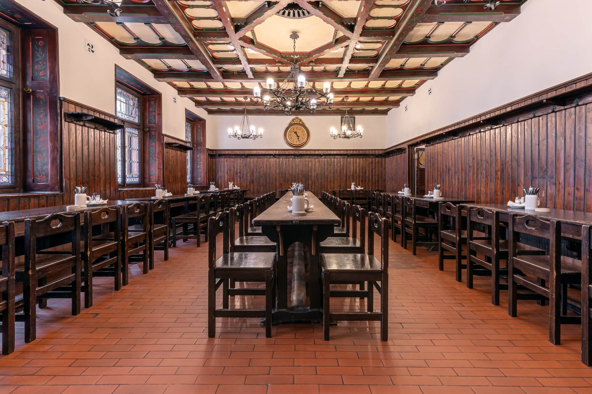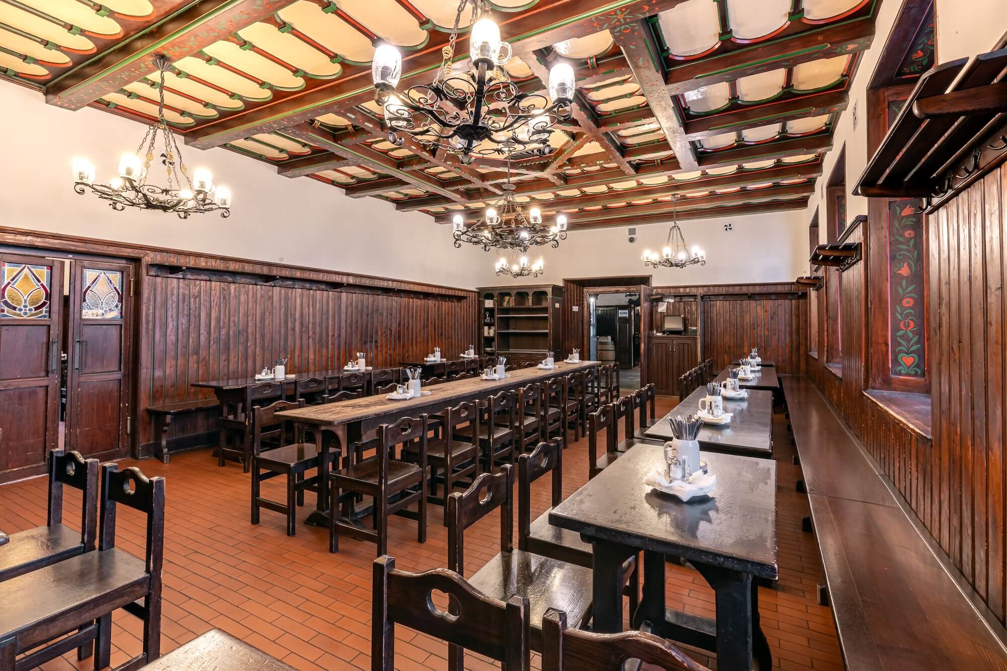 Jeden z nejznámějších sálů našeho podniku s taflováním a kazetovým stropem. Pohodlně se zde usadí až 76 hostů.